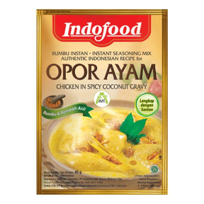 Indofood Instant Seasoning Mix for Opor Ayam is an Indonesian dish from central Java consisting of chicken cooked in coconut milk. Comes in a convenient pack completed with coconut milk powder and spices for an authentic opor ayam dish. Eat with rice, ketupat or sambal goreng ati ampla.